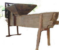 mit 8 Bügeleisen und 1 Holz-Handgriff, mit dem die Eisen